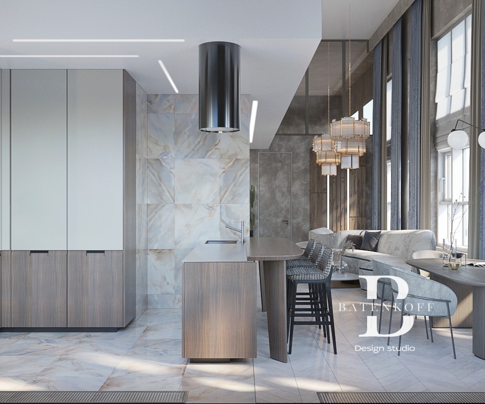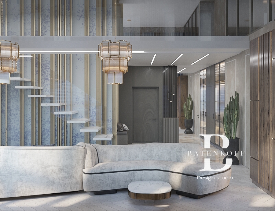 Проект двухъярусного помещения предполагает четкое разделение пространства на общественную и приватную зону.